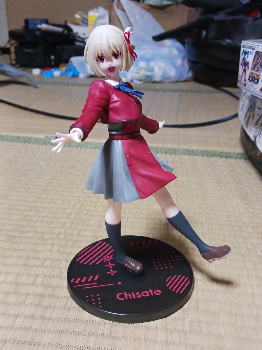続いてはリコリス・リコイルの千束です。背景が散らかってるのは気にしないでね、ただのペットボトルの蓋だから。アニメは少ししか観てませんが、バーバーカットで取れそうだったので取りました。意外と手こずって3000円かかりました!腕落ちたな私…。ちなみに、リコリス・リコイルはそこまで好きなアニメではないですが、最近友人のヴァルト氏に対して、エタバト(ヴァルト氏の作品)にリコリス・リコイル参戦!と言う遊びをよくやっていて、そのネタをやる為だけに手に入れました。で、実際入手してみたら、割りと良いなと思いました。後、次回のエタバトにリコリス・リコイルが本当に出るようです、ガチで。